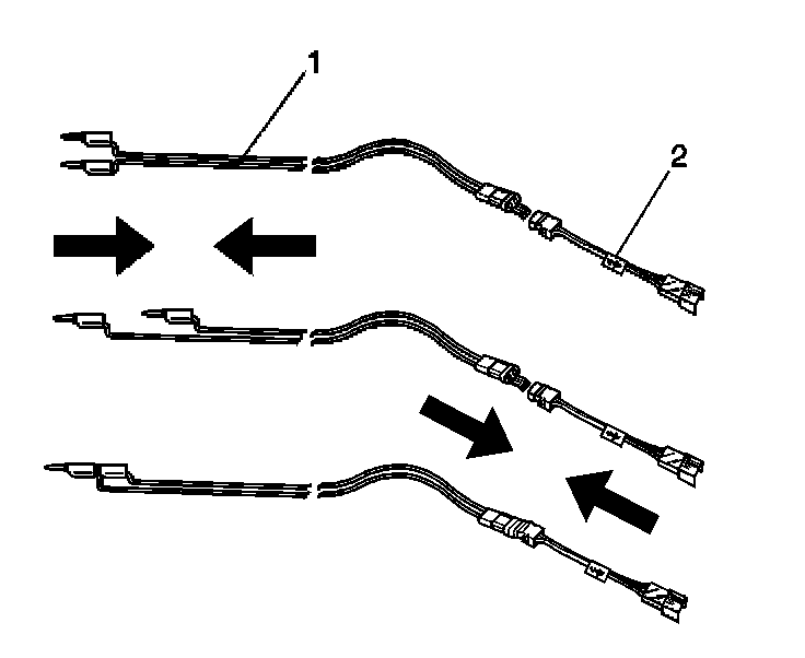 11. Inspect the J 38826 SIR deployment harness (1) and the appropriate pigtail adapter (2) for damage. Replace as needed.