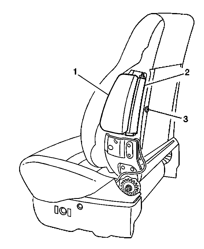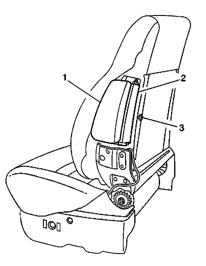 3. Install the plastic molding (2) that holds the air bag inflator module to the driver seat back frame.