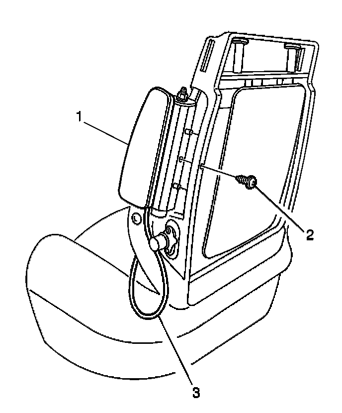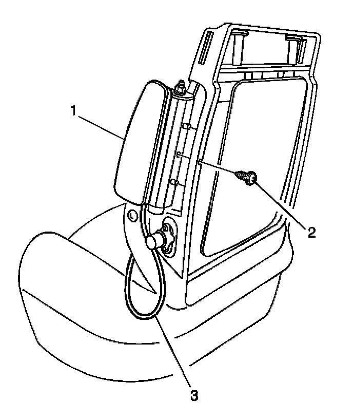 1. Install the inflator module wiring harness (3) to the driver seat frame, while guiding the wiring harness through the appropriate spots on the driver seat frame.