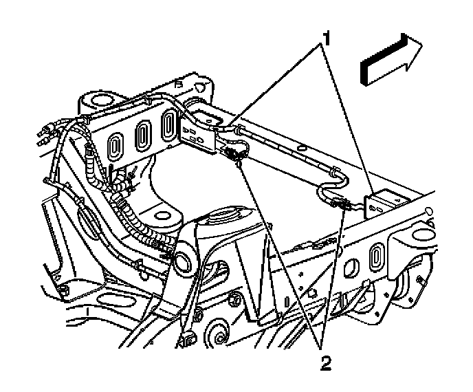 4. Remove the 2 integral bolts that retain the front end sensor to the frame front crossmember.