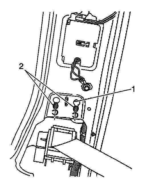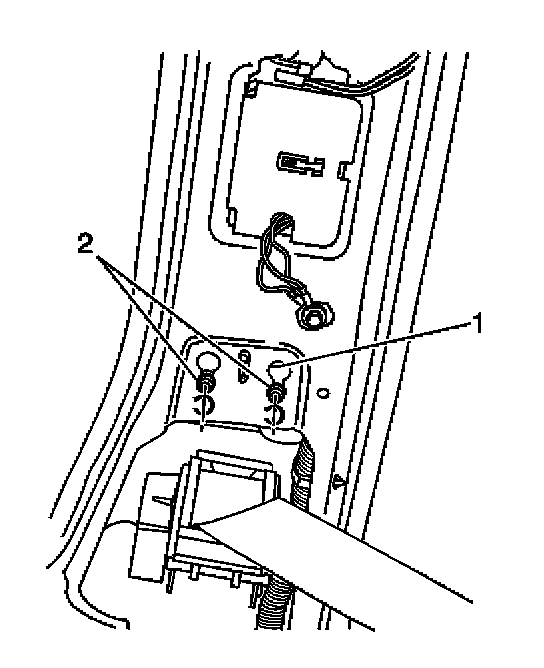 3. Loosen the inflatable restraint side impact sensor fasteners (2).