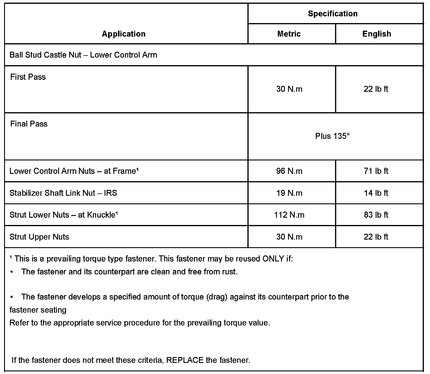 Fastener Tightening Specifications