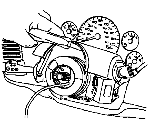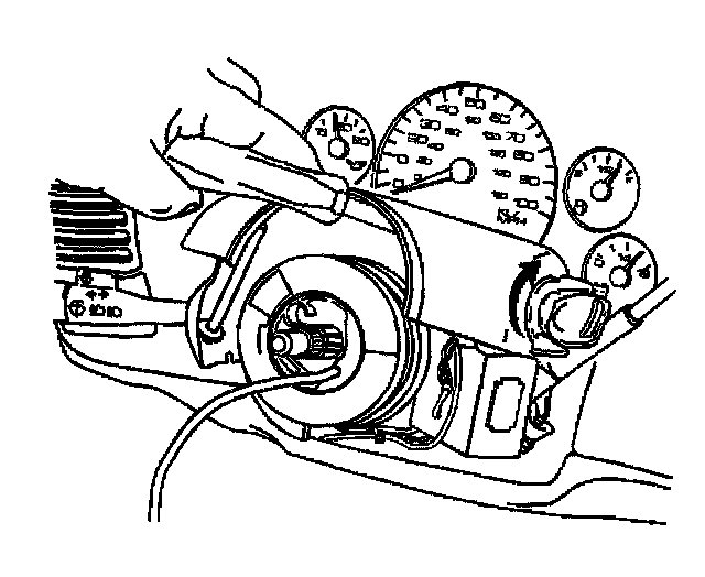 8. Lift the upper steering column shroud in order to gain access to the lock cylinder access hole (1).