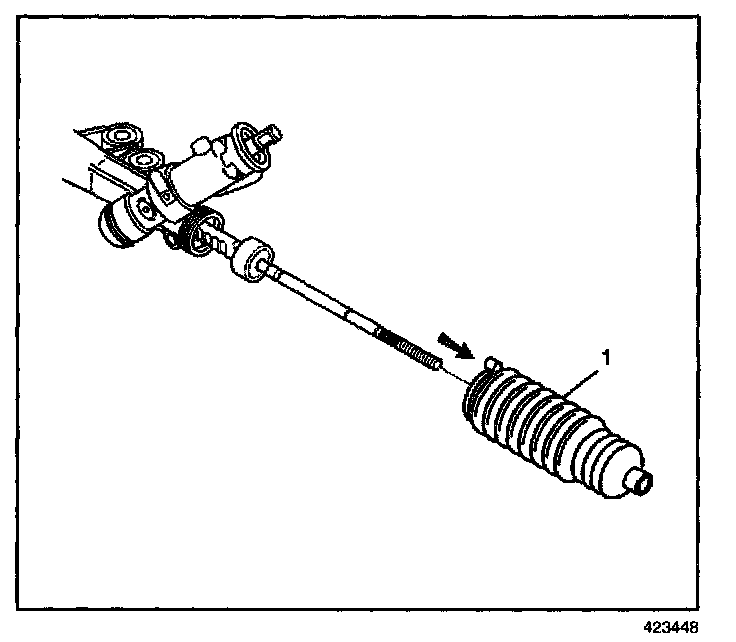 6. Remove the rack and pinion boot (1) from the rack and pinion gear assembly.