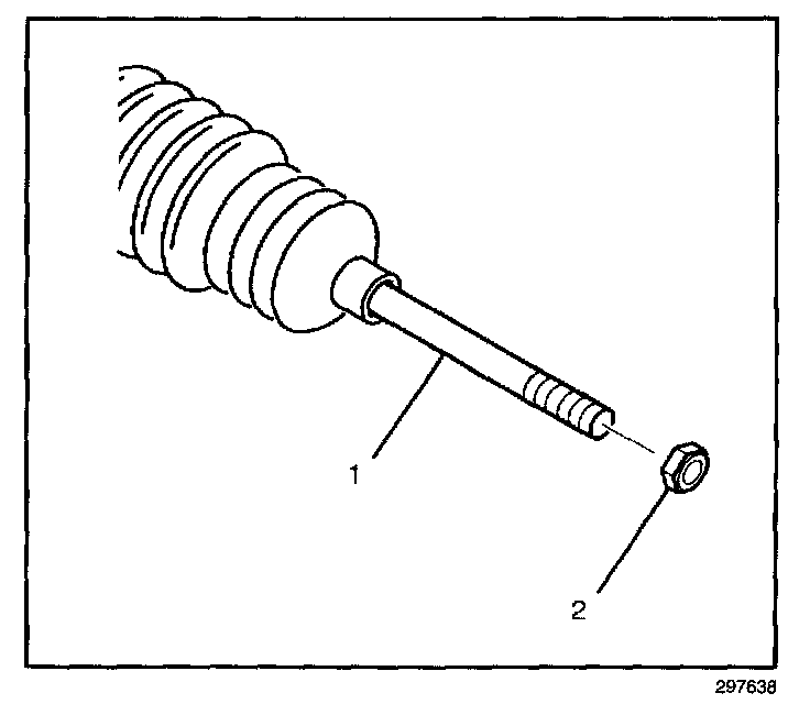 8. Install the hex jam nut (2) to the inner tie rod assembly (1).