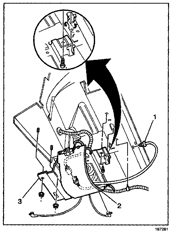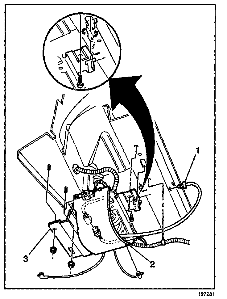 7. Rotate the air compressor and the bracket 90 degrees in order to disengage the compressor bracket hook from the vehicle.
