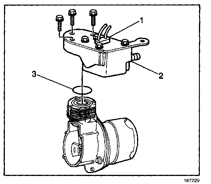 6. Remove the 0-ring (3) from the automatic level control air compressor.