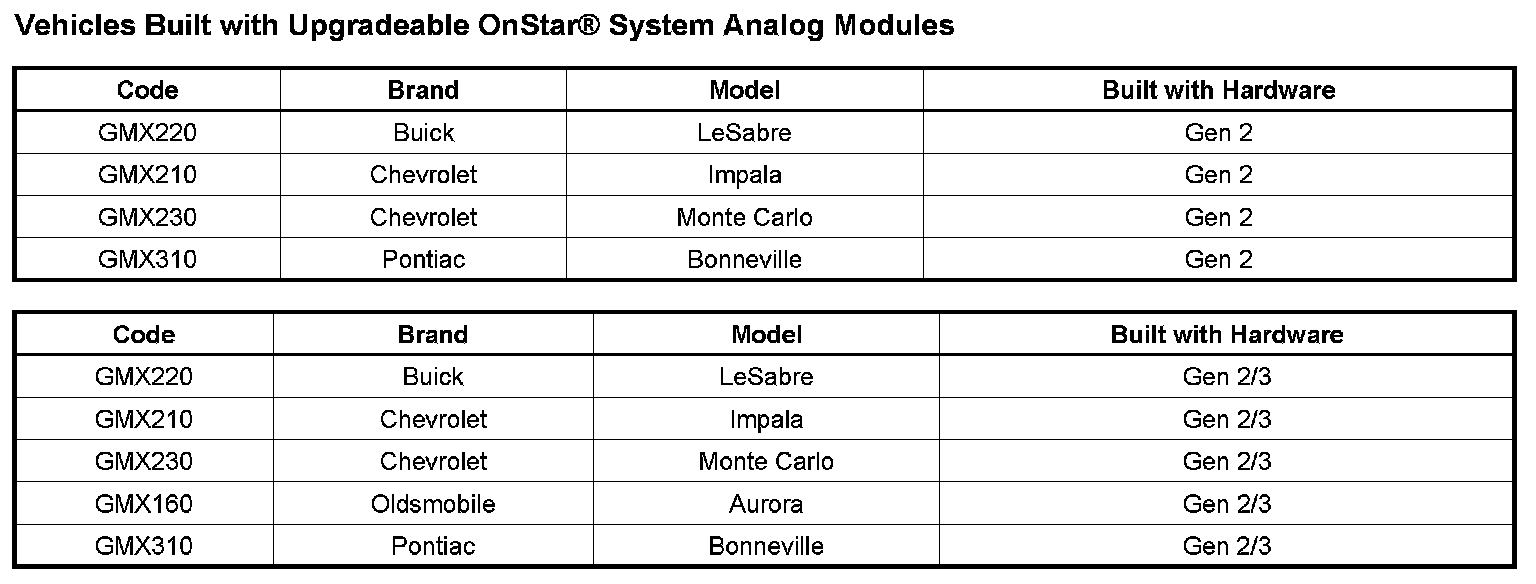 Vehicles Built with Upgradeable OnStar(R) System Analog Modules