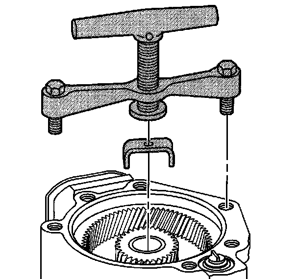 2. Use J 36850 or equivalent in order to retain the parking gear thrust bearing (695) to the parking gear(696).