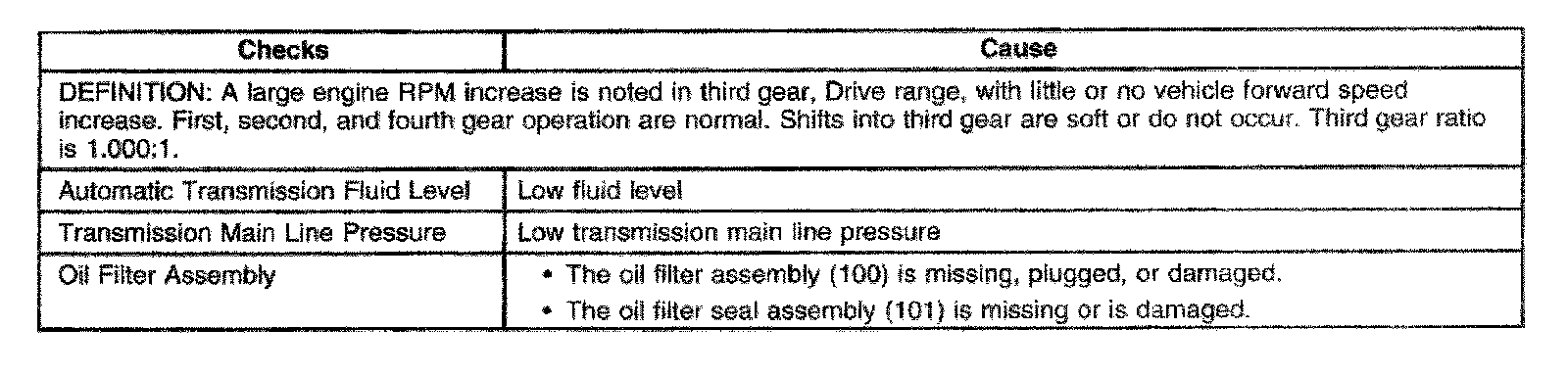 Slipping or No Third Gear