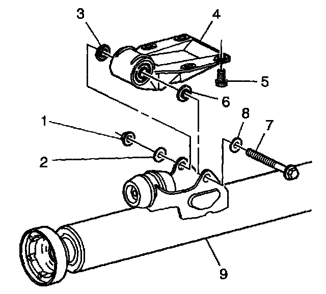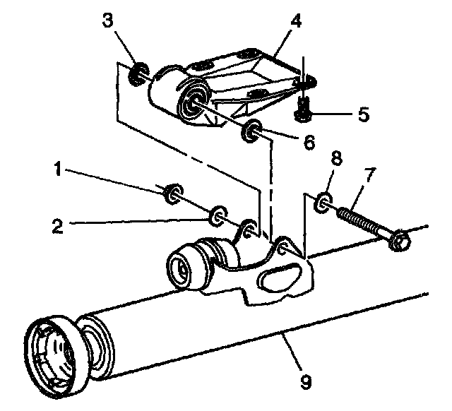 5. Loosen, but do not remove, the torque tube-to-bracket through bolt (7) and nut (1).