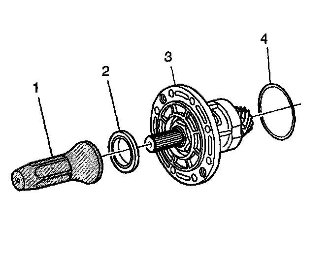 1. Using the J 44915, install a new oil seal (2) to the drive pinion housing.