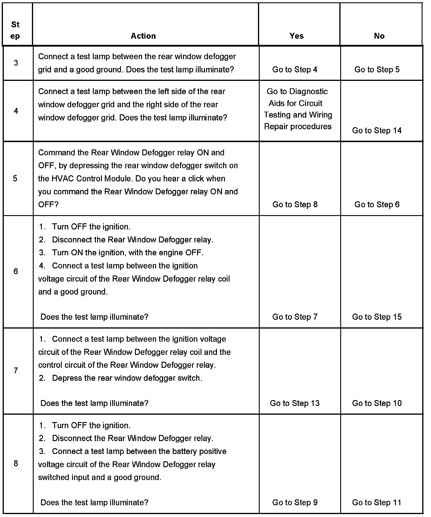 5. Listen for an audible click when the Rear Window Defogger relay operates. Command both the ON and OFF states of the Rear Window Defogger relay. Repeat the commands as necessary.