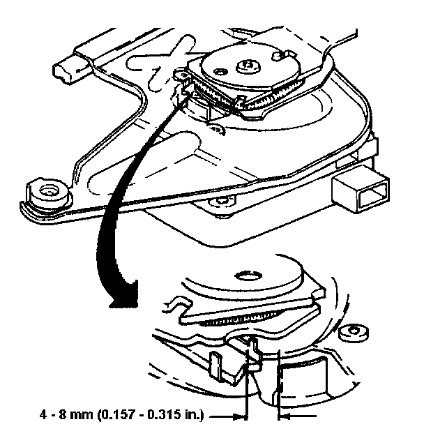 4. Check the gap between the wiper motor crank arm and tab. If the gap is not 4-8 mm (0.157- 0.315 in), remove the wiper motor crank arm and repeat installation steps.