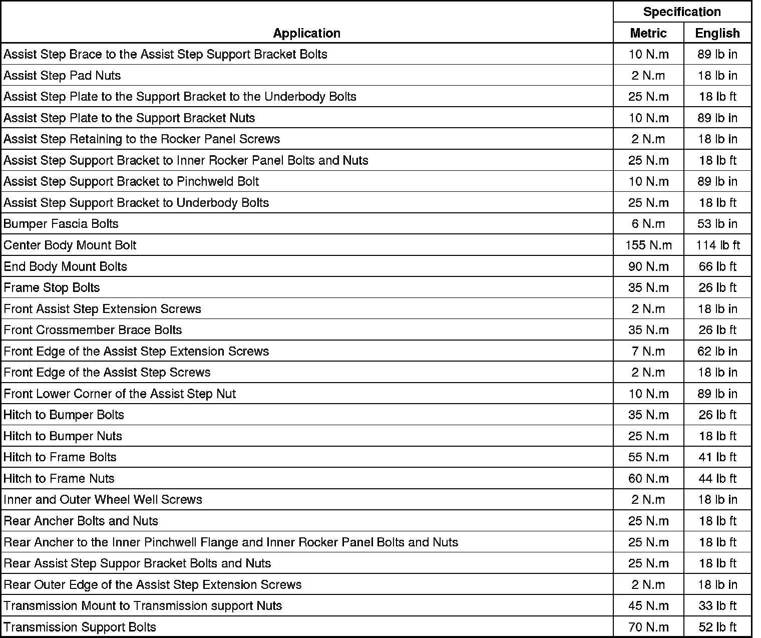 Fastener Tightening Specifications