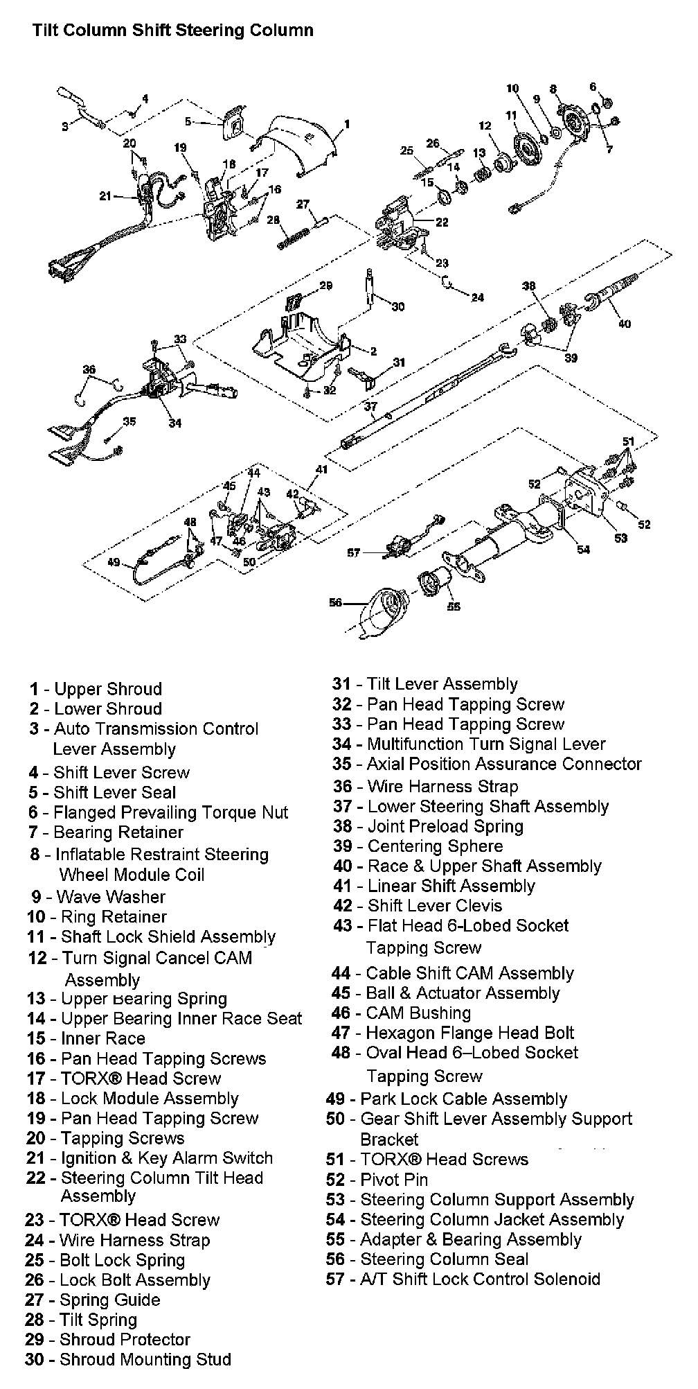 Tilt Column Shift Steering Column: