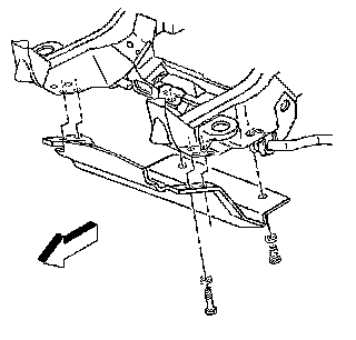 2. If the vehicle is equipped with the underbody shield package, then remove the steering linkage shield mounting bolts.