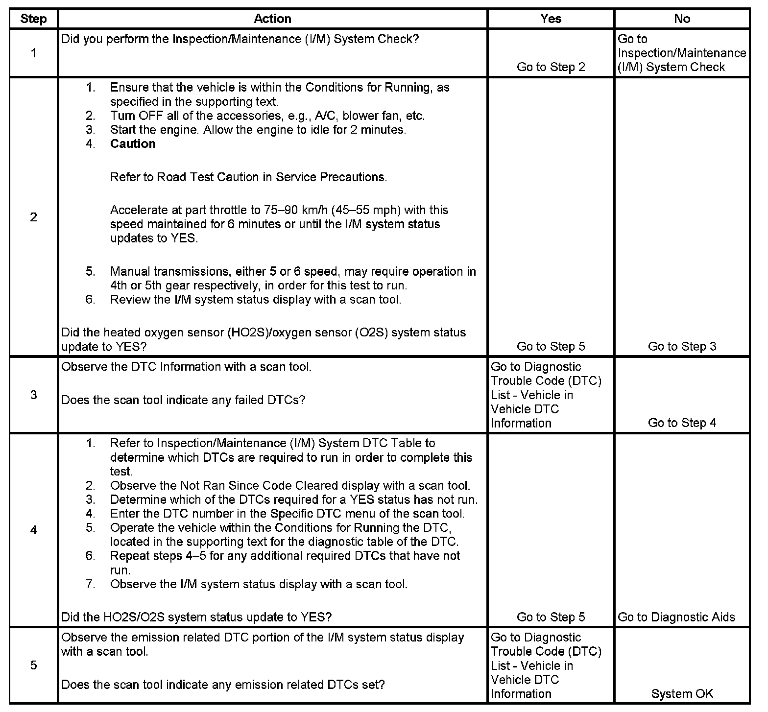 The I/M system status display on the scan tool provides an indication of whether the control module has completed the required tests. The I/M system status does not indicate that the tests have passed or failed. When all of the diagnostics for a specific system have run and passed the I/M system status will update to YES, indicating a determination was made, even if all of the other tests for that system have not run.