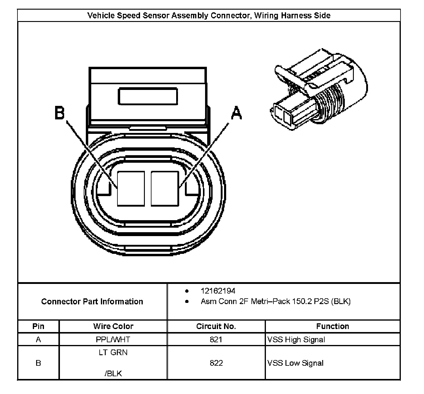Vehicle Speed Sensor Assembly Connector End View, Wiring Harness Side: