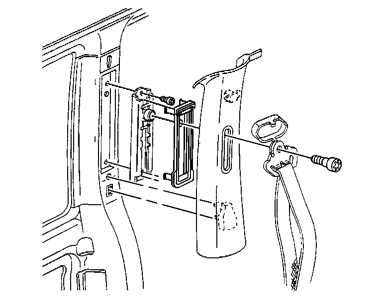 2. Remove the front seat shoulder belt retaining bolt from the guide adjuster bracket.