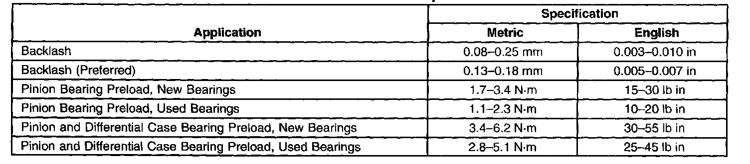 Axle Preload and Backlash Specifications: