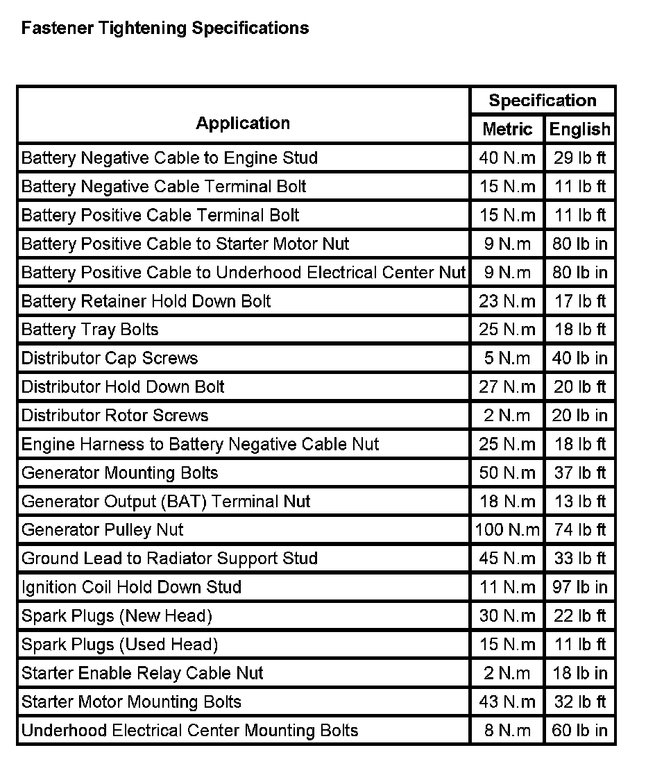 Starting and Charging: Specifications