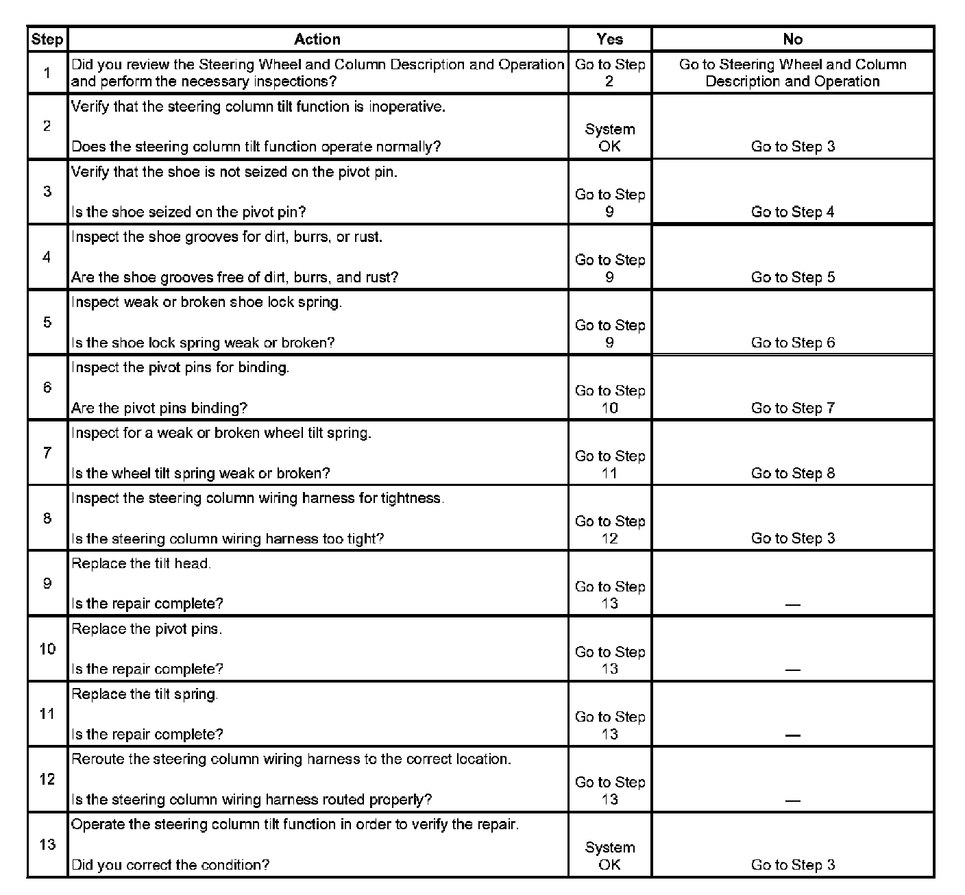 Steering Column Tilt Function Inoperative