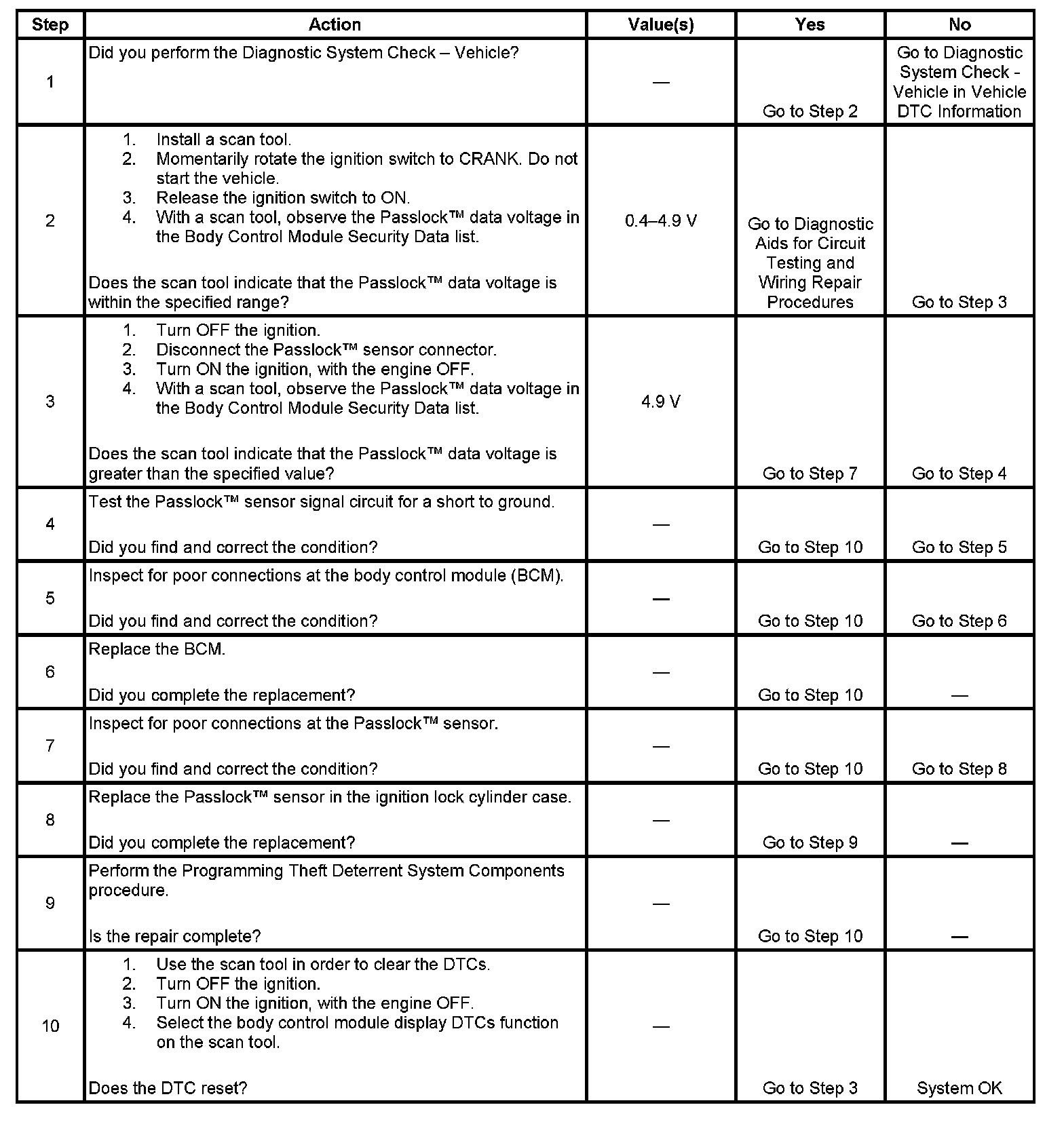 - Inspect the Passlock(TM) sensor harness for an intermittent or a short to ground.