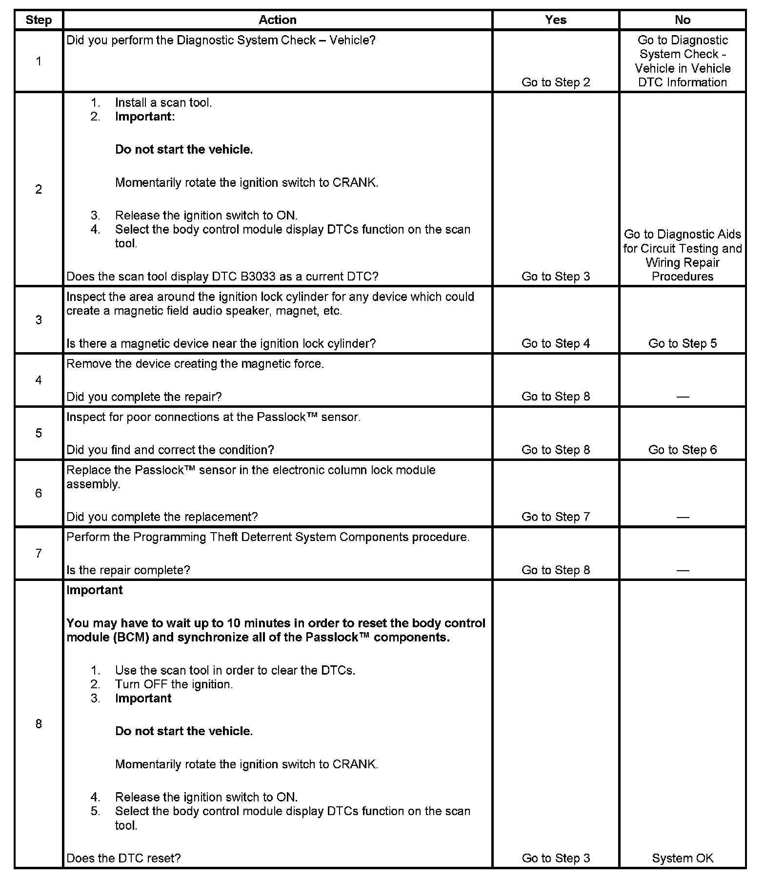 - Inspect the Passlock(TM) sensor harness for intermittent or poor connections.