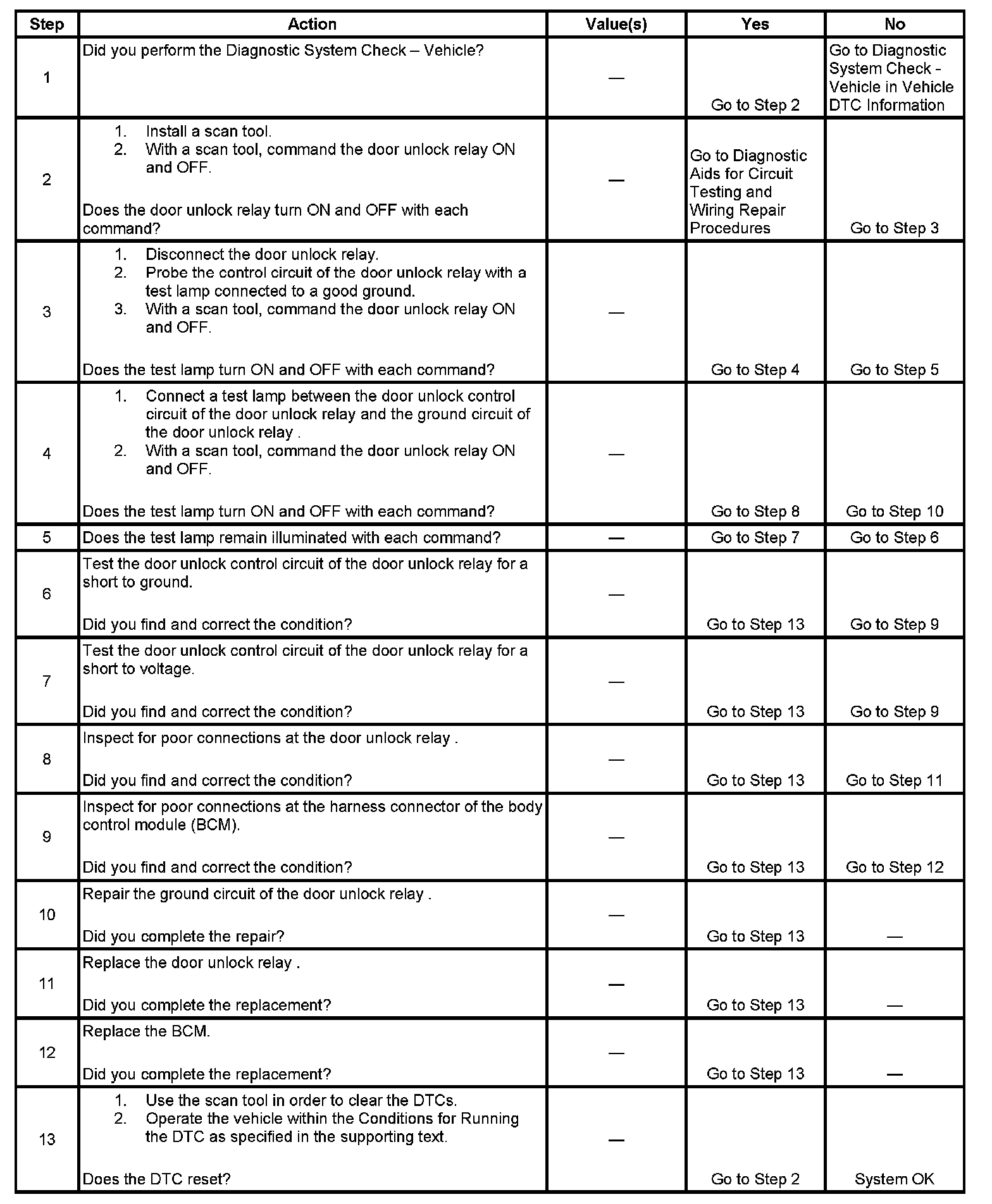 - When the BCM supplies a voltage signal on the door unlock control circuit and the door unlock control circuit is shorted to ground.