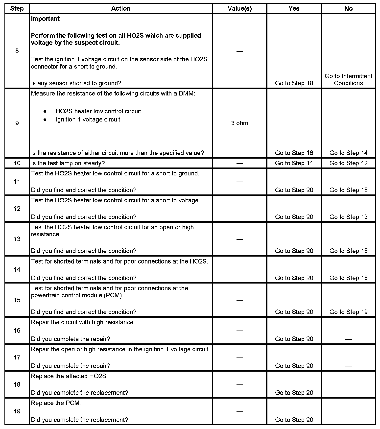 - The PCM detects that the affected HO2S Heater Current parameter is more than 1.375 amps or less than 0.25 amps.