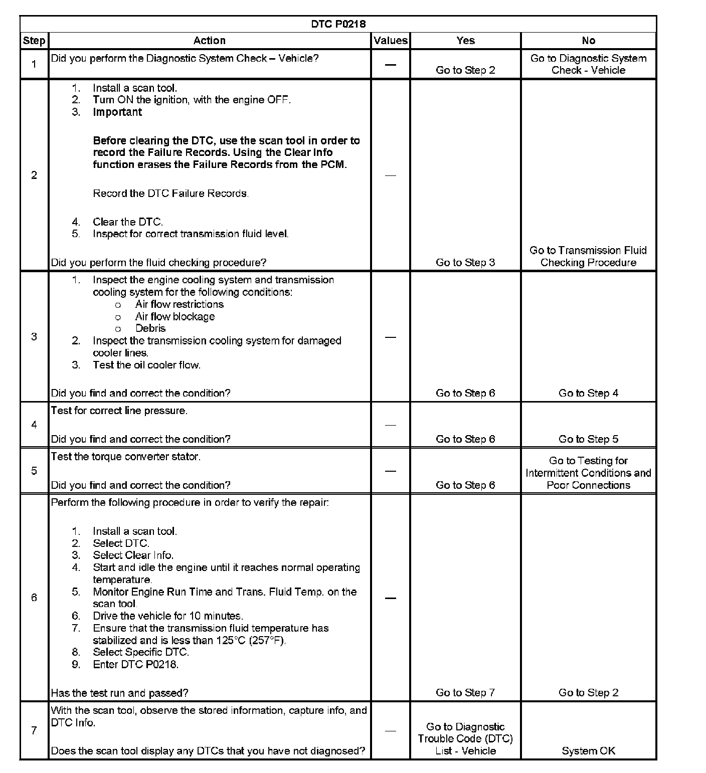 When the powertrain control module (PCM) detects a high transmission fluid temperature (TFT) for a long period of time, then DTC P0218 sets. DTC P0218 is a type C DTC.