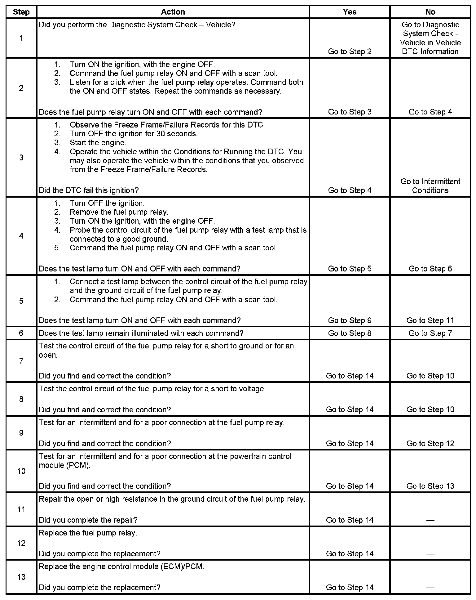 DTC P0230 Fuel Pump Relay Control Circuit