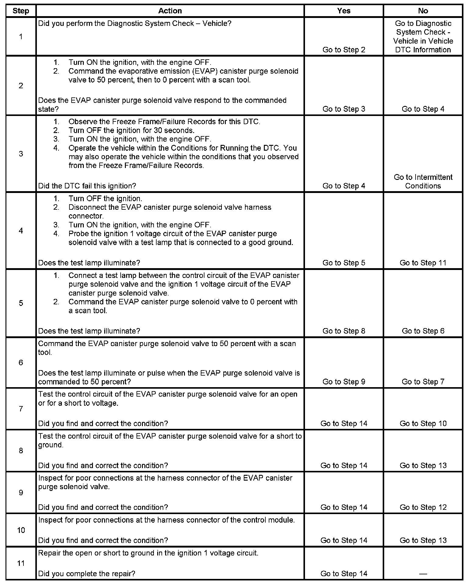 6. This step tests if a ground is constantly being applied to the EVAP canister purge solenoid valve.