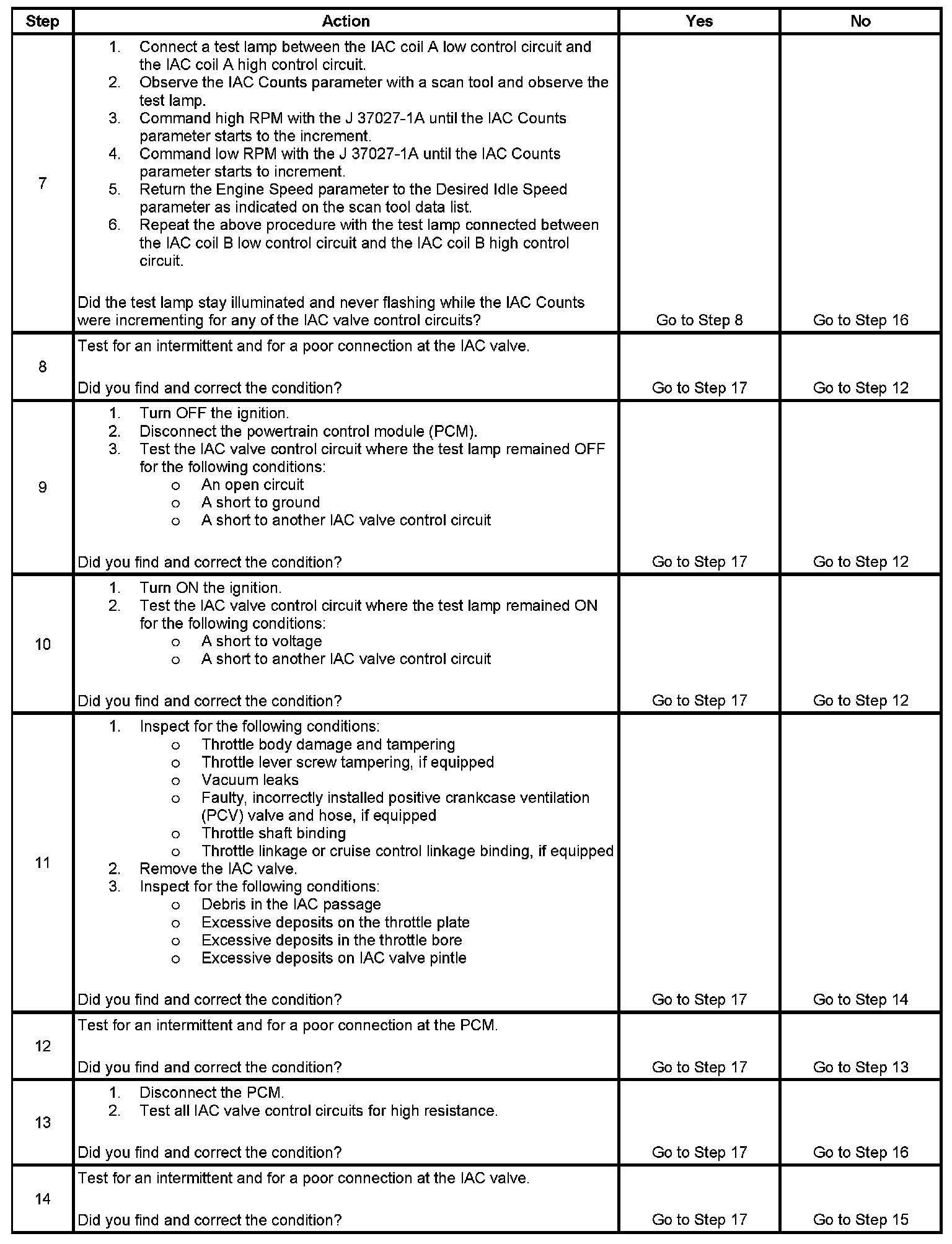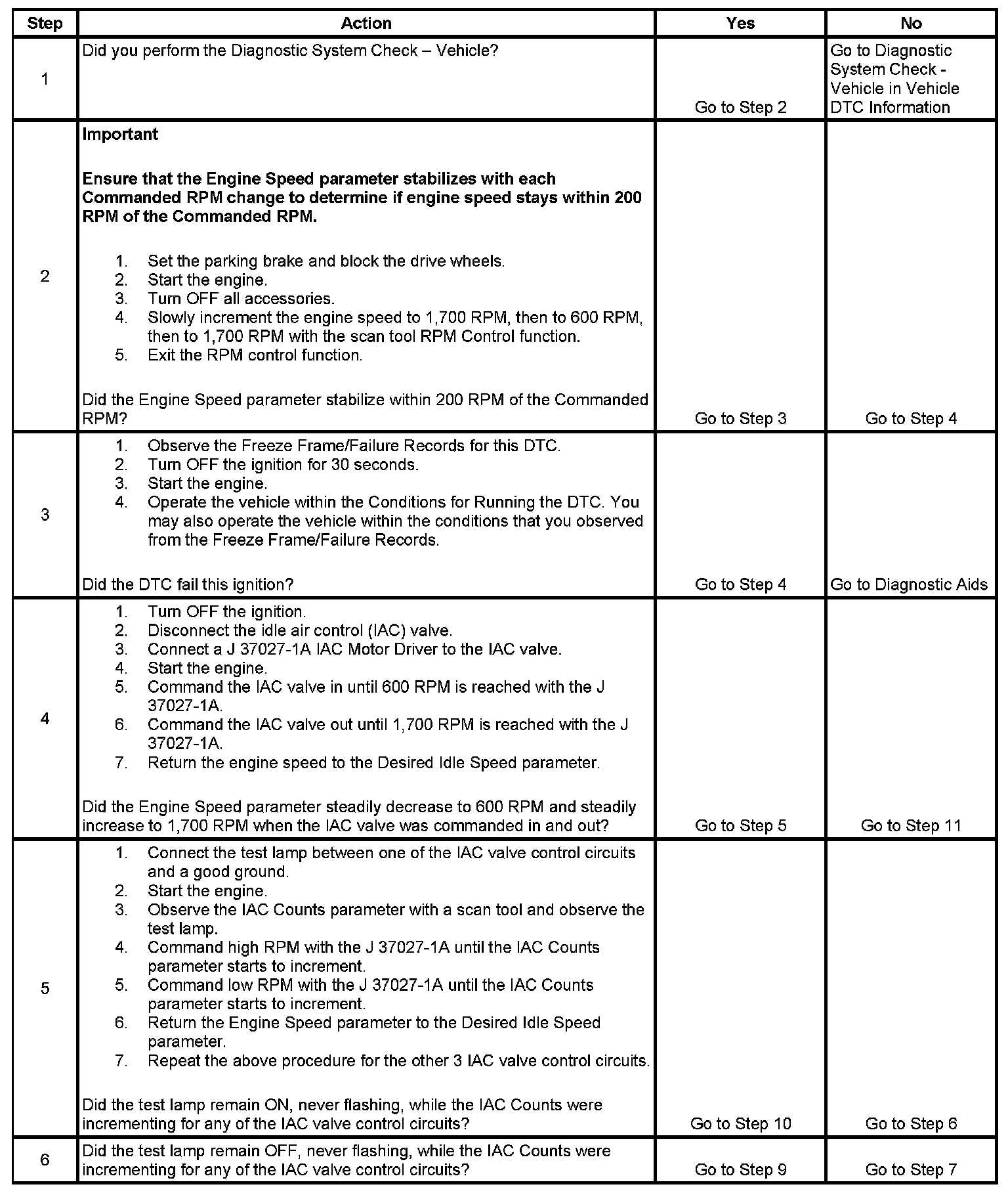 5. This test will determine the ability of the PCM and IAC valve control circuits to control the IAC valve.
