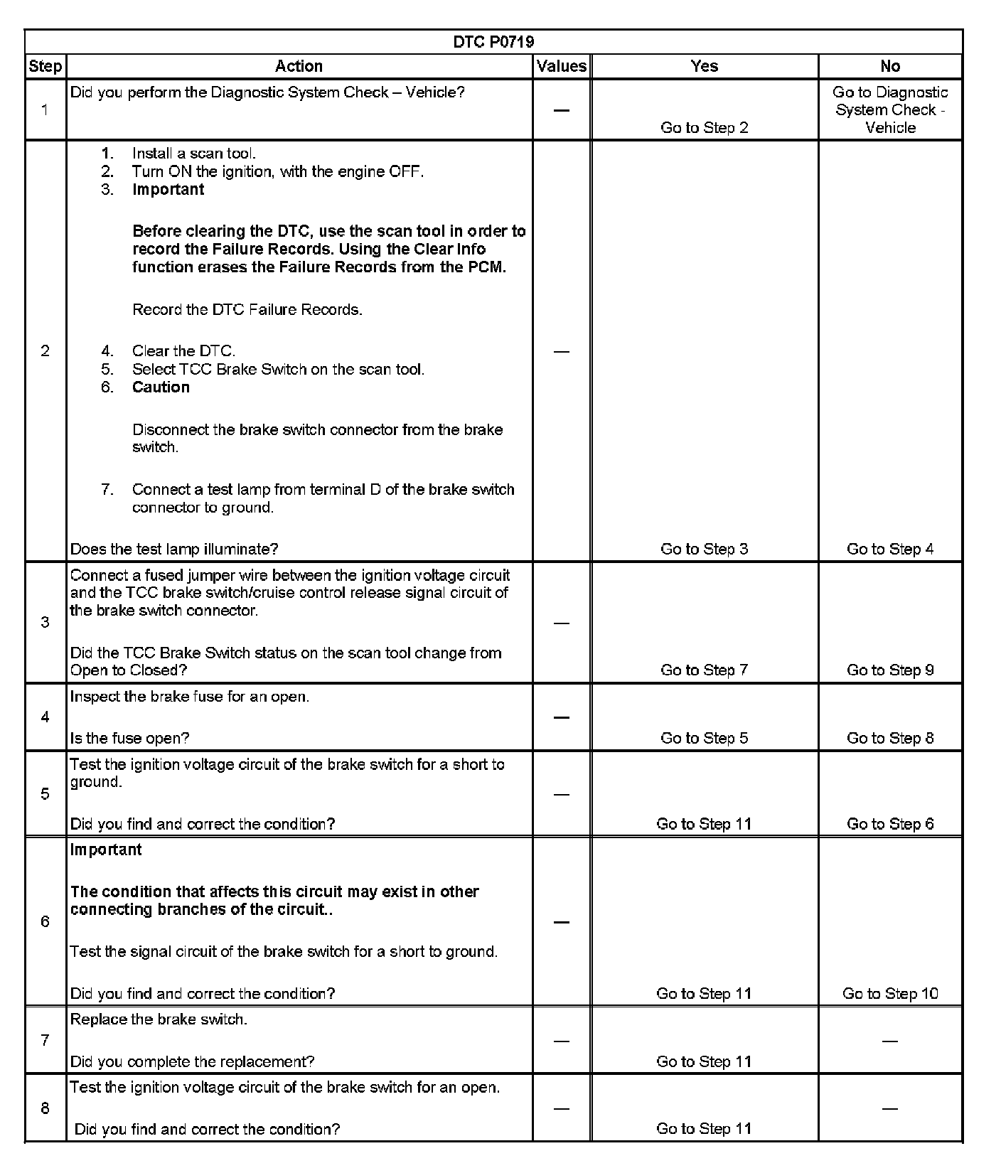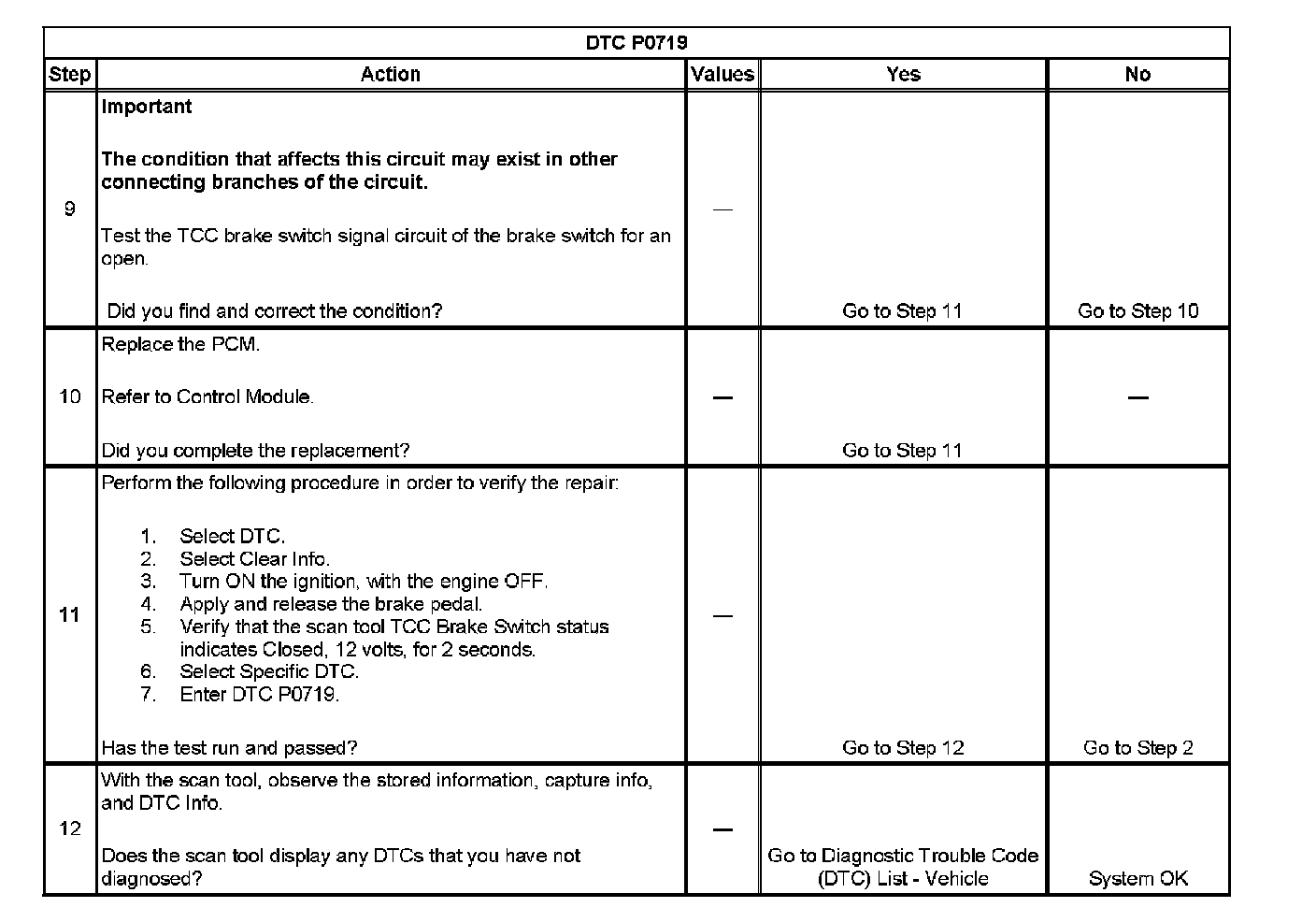^ The PCM stores DTC P0719 in PCM history.
