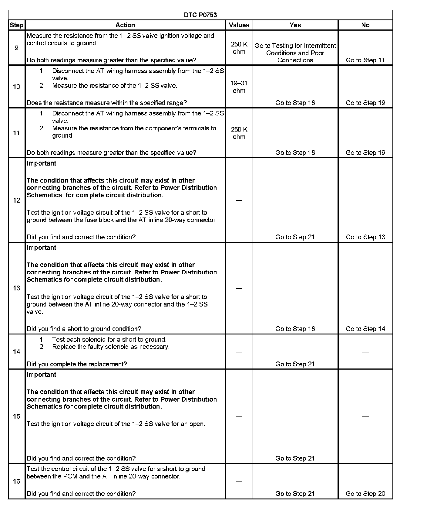 DTC P0753 1-2 Shift Solenoid (SS) Control Circuit