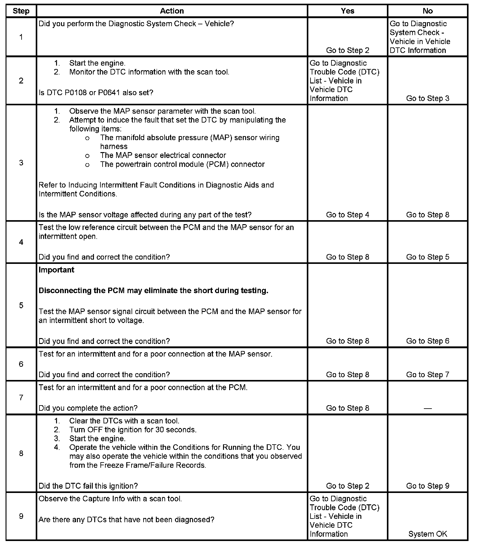 DTC P1106 Manifold Absolute Pressure (MAP) Sensor Circuit Intermittent High Voltage