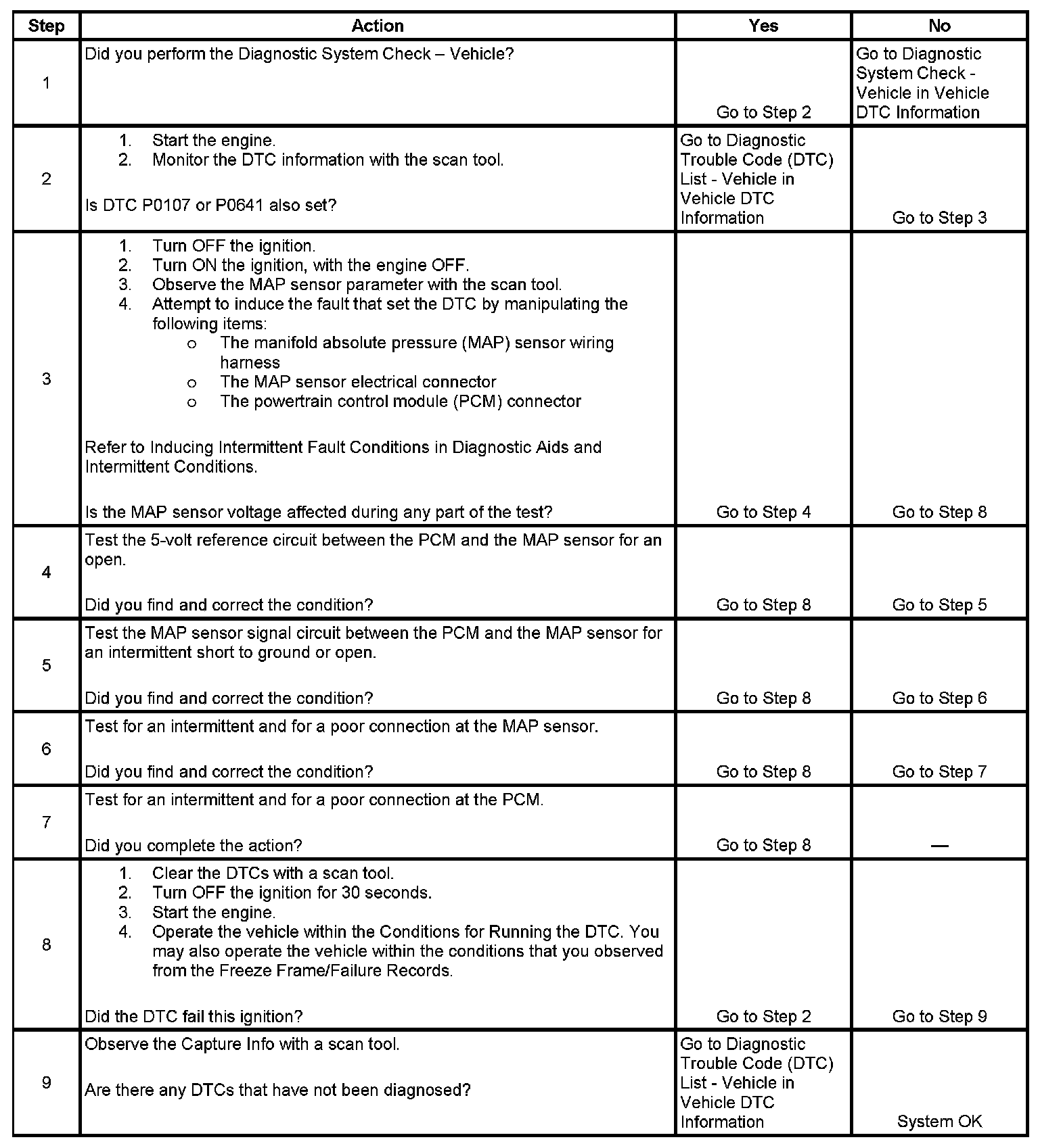 DTC P1107 Manifold Absolute Pressure (MAP) Sensor Circuit Intermittent Low Voltage