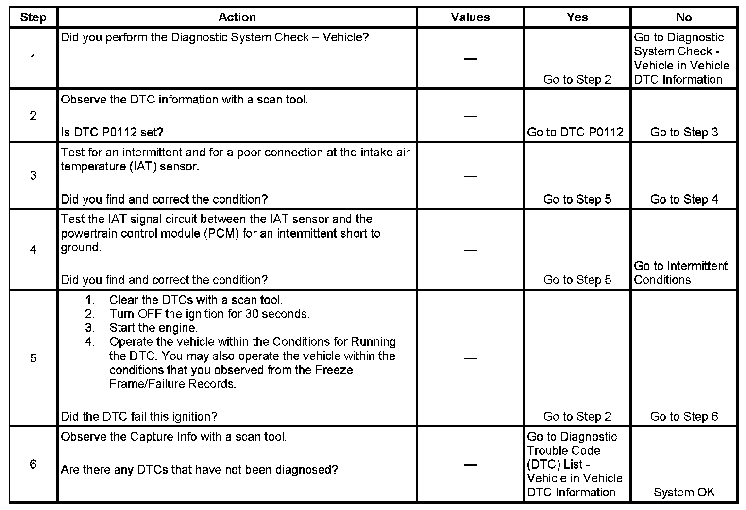 - DTC P0112 is not set.