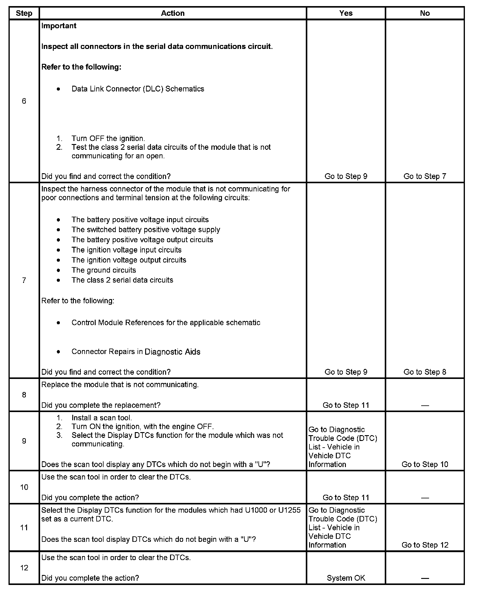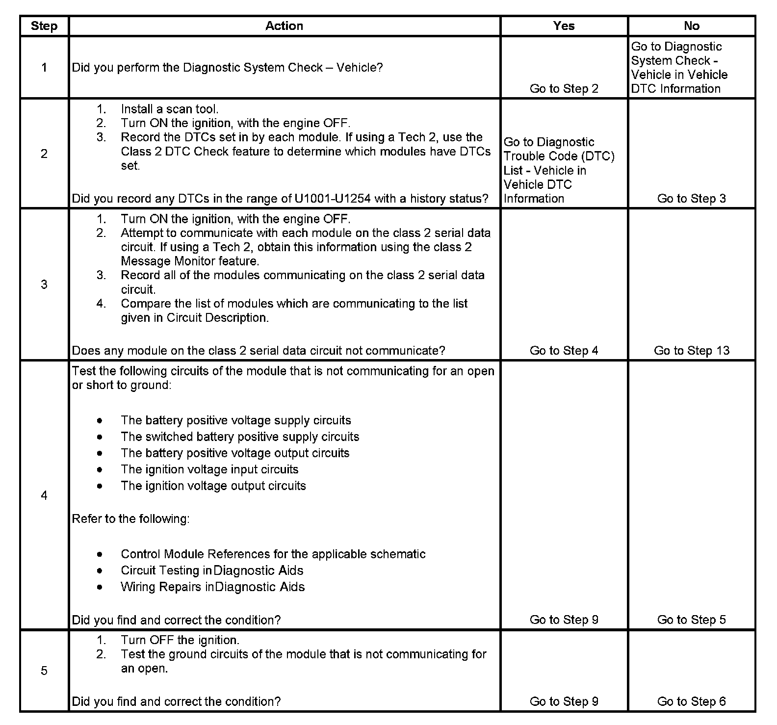 3. The modules not communicating are the likely cause of U1000 or U1255. The modules that are available on the class 2 serial data circuit are listed in the Circuit Description.
