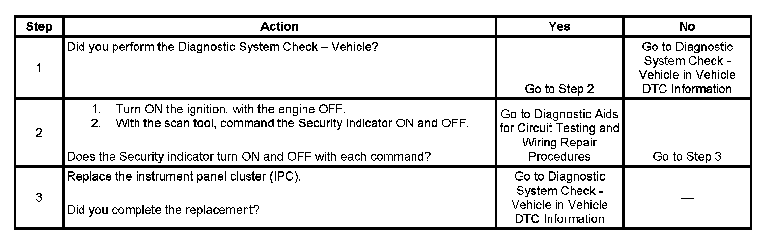 SECURITY Indicator Inoperative