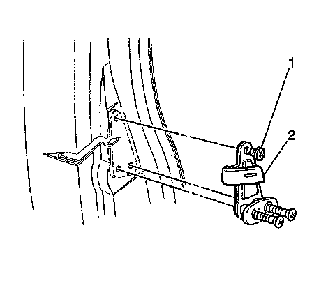 Install the liftgate striker (2) with the screws (1).