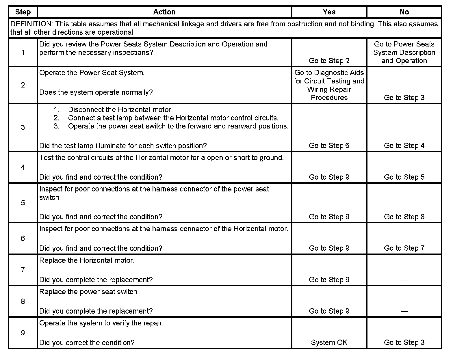Power Seat Does Not Move Forward/Rearward