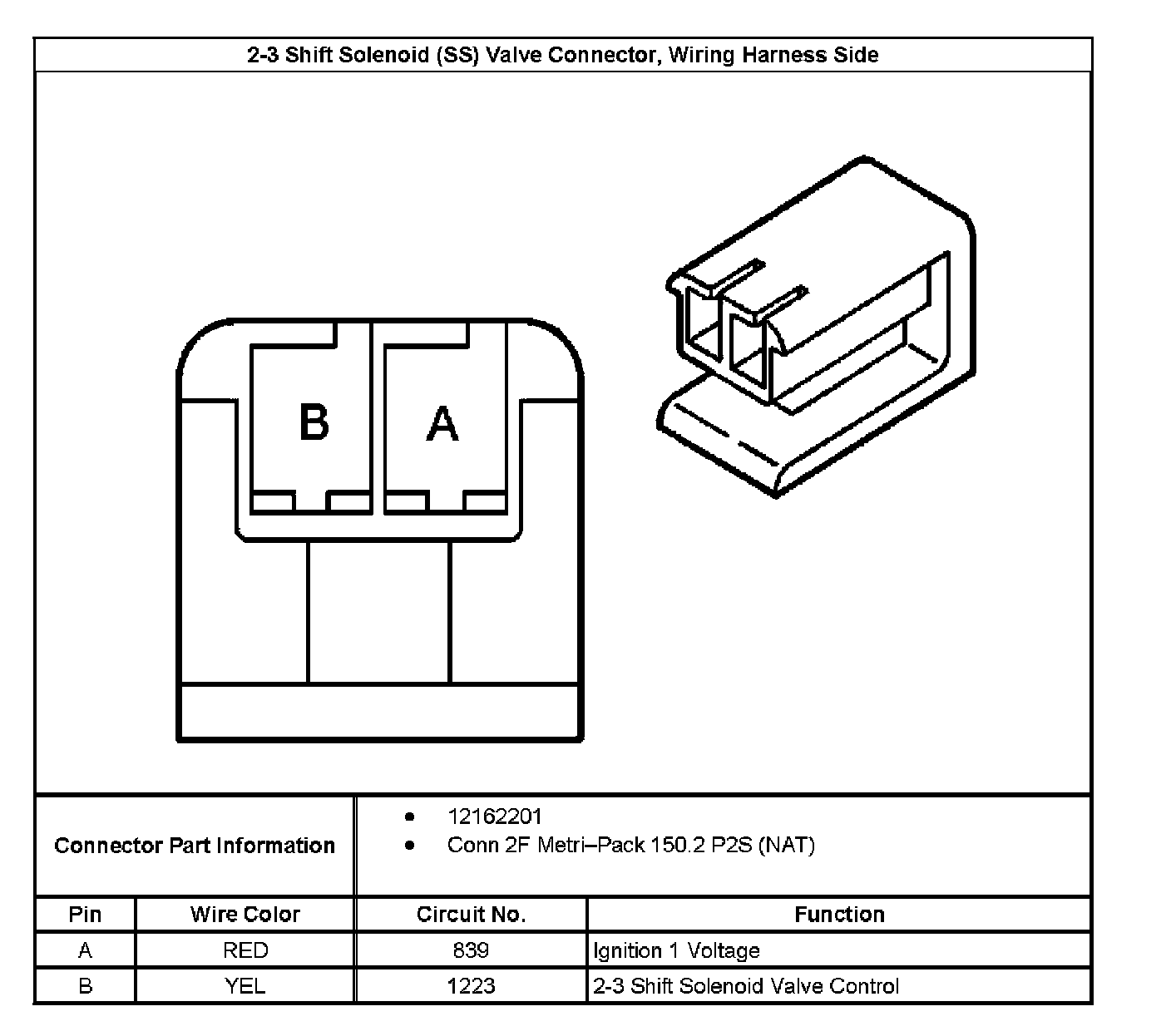 2-3 Shift Solenoid (SS) Valve Connector End View, Wiring Harness Side: