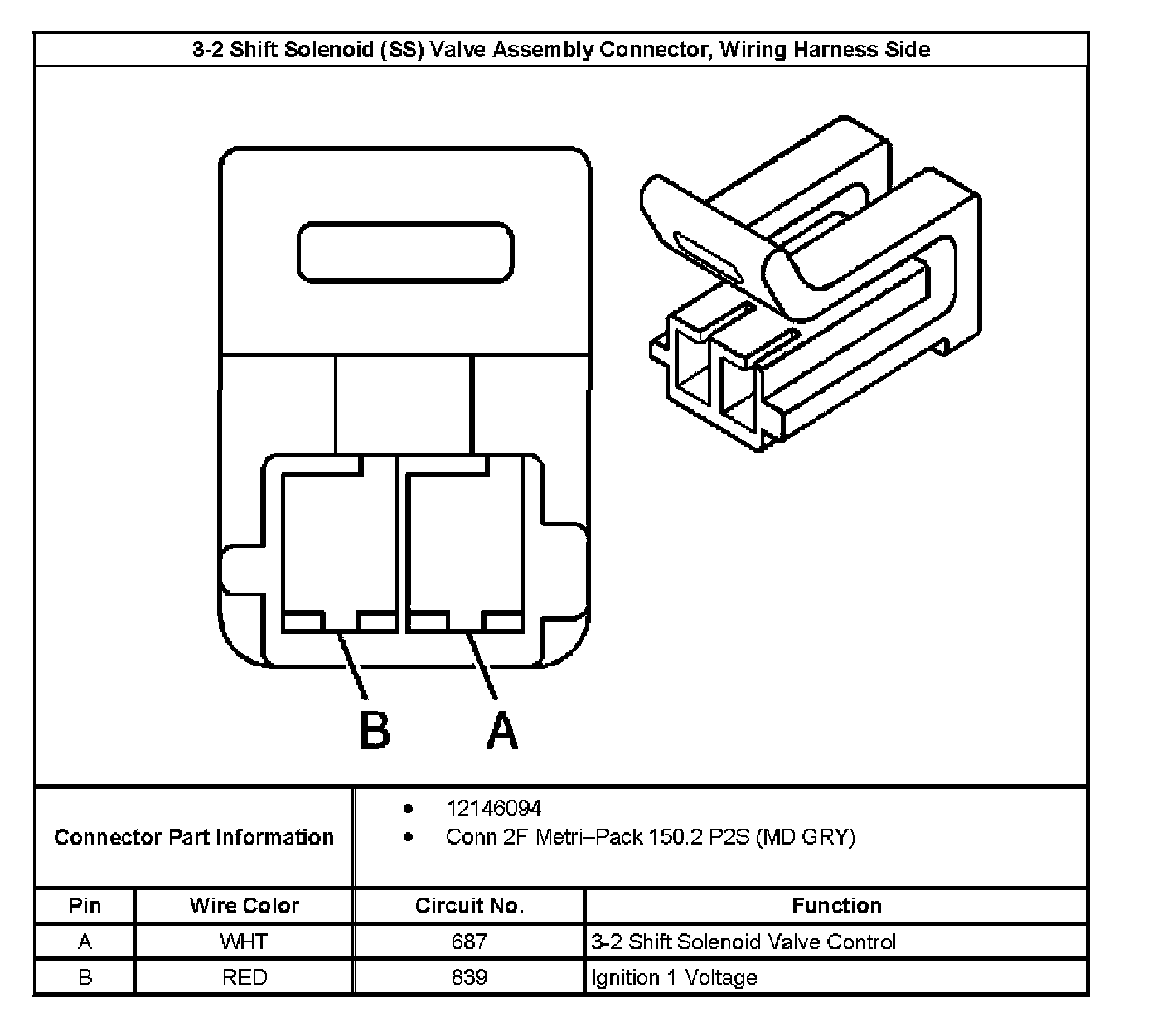 3-2 Shift Solenoid (SS) Valve Assembly Connector End View, Wiring Harness Side: