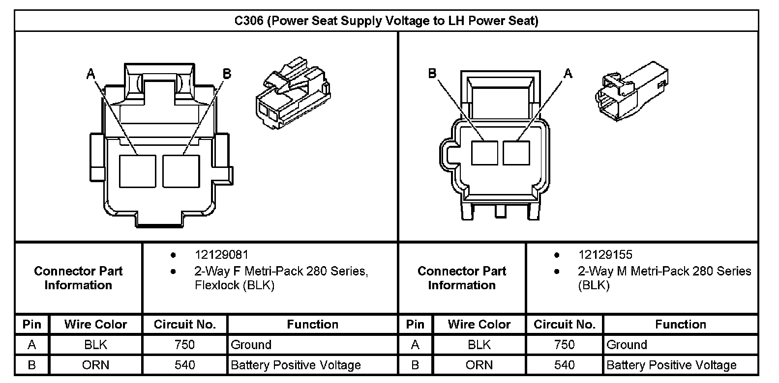 C306 (Power Seat Supply Voltage To LH Power Seat):