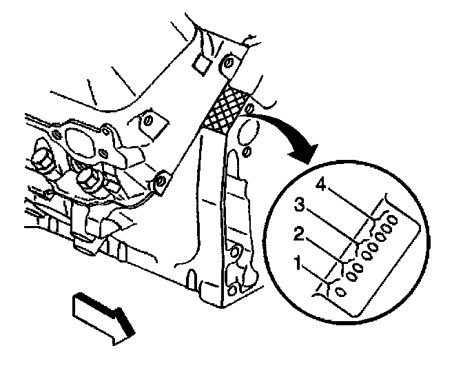 Engine Identification^ The Vehicle Identification Number (VIN) Derivative is located on the left side rear of the engine block (1) or on the right side rear (2) and typically is a nine digit number stamped or laser etched onto the engine at the vehicle assembly plant.
