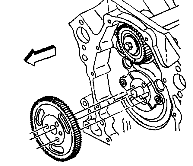 10. Rotate the engine camshaft so that the timing mark on the balance shaft drive gear is in the 12 o'clock position.