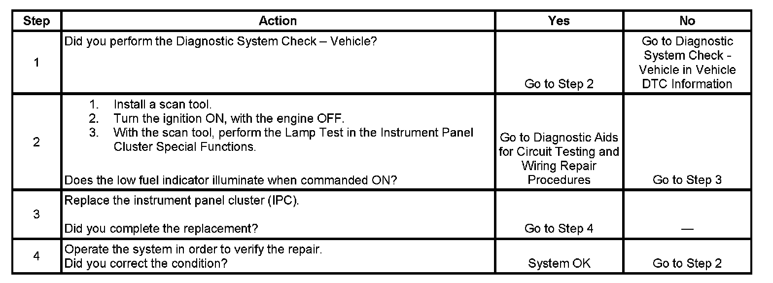 Low Fuel Indicator Inoperative